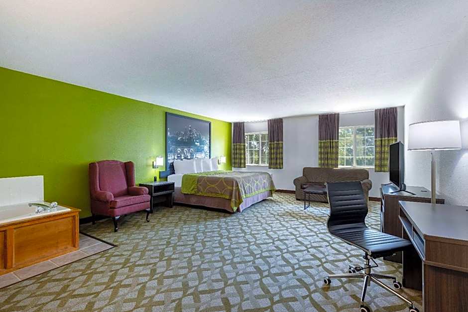 Super 8 by Wyndham De Soto offers a variety of room types including triple, family, and suite options. The occupancy ranges from accommodating 3 adults and 2 children to 4 adults and 1 child. Smoking is not allowed in any of the rooms. Bed sizes include a king size bed and two queen size beds.