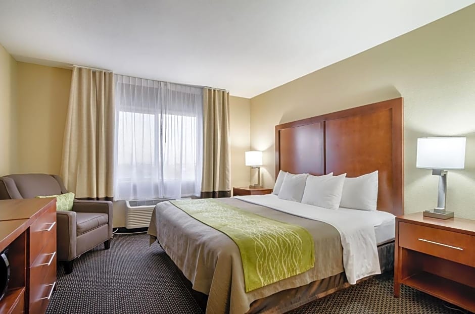 Comfort Inn Garden City offers a variety of room types including King Suites, Superior King Suites, King Rooms, King Rooms with accessibility features, and Queen Rooms with Two Queen Beds. All rooms are non-smoking and have different sizes ranging from 323 sqft to 344 sqft. The occupancy varies depending on the room type, accommodating between 2 adults and 1 child up to 4 adults and 3 children. Bed sizes range from King size beds to Queen size beds, with some rooms also having a sofa bed.