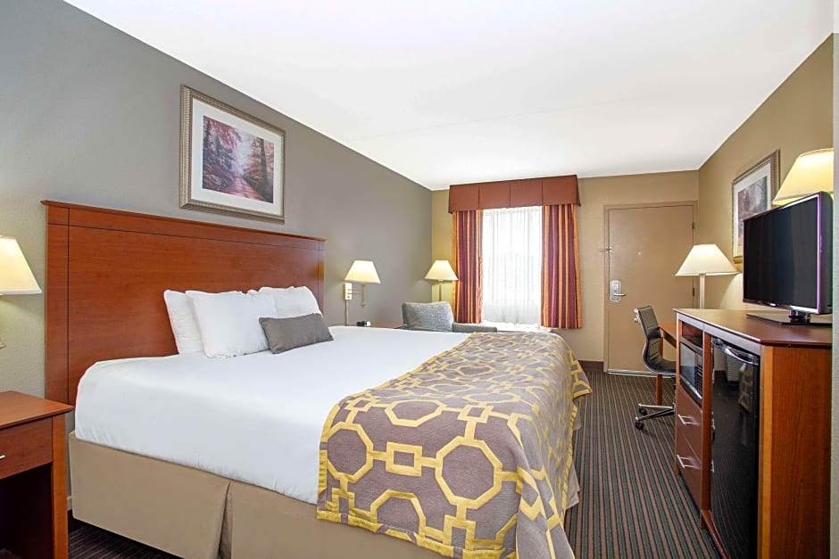 Bed comfy. Linens & towels all clean. Couch is nice addition for seating along with desk & chair. Enough furniture in the room. Plenty of lighting & outlets to charge devices. Fridge w freezer & microwave. Freezer needs to be defrosted. TV okay; some channels don't work. Saw in another review the same issue. So, why hasn't it been fixed? Bathroom clean with good shower & hot water. Vanity fine. Toilet paper & tissues were stocked. Breakfast was good. Puja was at the Front Desk when I checked in and she was professional, helpful and pleasant. The woman who was there on 5/9, when I checked out, did not smile, spoke one word answer ("no") in response to a question I asked, and was not friendly or helpful. She needs to be terminated, or become more professional, helpful and friendly in a front-facing customer service position. And, the difference in her attitude and Puja's were like night and day. Puja is the best. I asked to speak with the Manager, Mr. Bhakta, because I wanted to know if he was related to Roger Bhakta in Salina, KS. He is not related, but knows of him. Mr. Bhakta at Baymont and I had a pleasant conversation. I would have mentioned the issue with the employee, except she was standing right there when I was speaking with him. All-in-all, as I said to Mr. Bhakta, a pleasant stay. I recommend Baymont, and I would return in the future. Good value for the price!