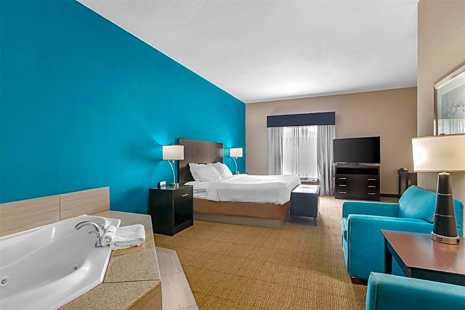 Suite King Bed Mobility Accessible Roll In Shower Sofa Microwave Fridge Wi-Fi NSMK Full Breakfast is 248 square feet and includes a king-size bed 150-183 width.