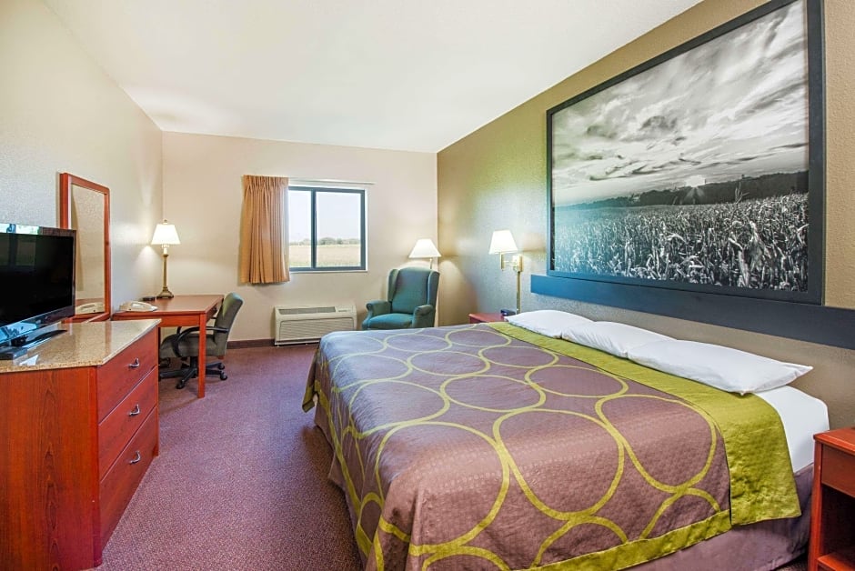 The Super 8 by Wyndham Iola KS offers a variety of room types including King Suites, Queen Rooms, Queen Rooms with Two Queen Beds, King Rooms with Bathtub and Grab Bars, and standard King Rooms. All rooms are non-smoking, with a room size of 301 sqft. The rooms can accommodate anywhere from 3 adults and 2 children to 5 adults and 4 children. The bed sizes range from Queen to King.
