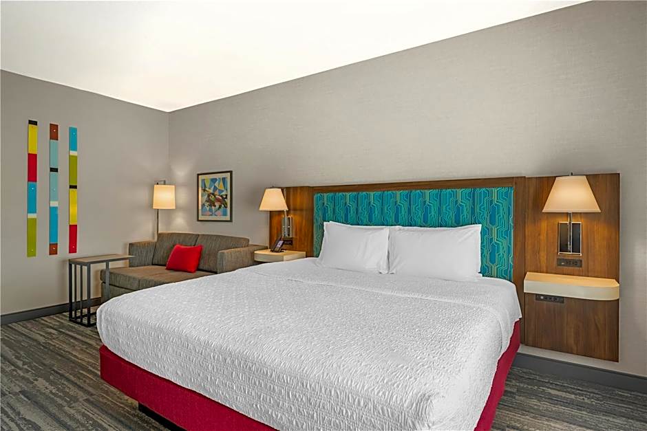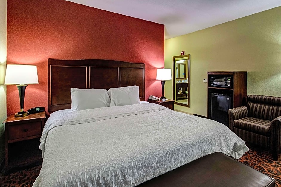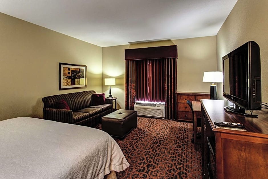 32-inch HDTV, free WiFi, desk, coffeemaker, comfortable seating Take it easy or stay on top of business in this welcoming room; designed with your convenience in mind. Relax watching the 32-inch LCD HDTV or make use of the excellent work environment provided by the large desk and free WiFi. This room also has a coffeemaker. The bathroom includes a shower with a curved rod that allows for more space and light. This room has one king clean and fresh Hampton bed®.
