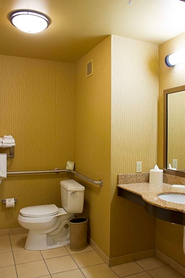 Any corresponding photo may not reflect the specific accessible room type or room feature. This mobility and hearing accessible, nonsmoking room features two queen sized beds , and an accessible bath tub or roll in shower. The room also has a visual alarm and notification devices for the doorbell or door knock and incoming phone calls. The room features comfortable soft seating, microwave, refrigerator, a HDTV, and easy to operate alarm clock/radio. The free high speed internet access will help you stay connected while on the road. If you prefer not to work at the desk, you can use the convenient lapdesk instead. You'll also enjoy the convenience of having a coffee maker with tea service and iron/ironing board in your room.