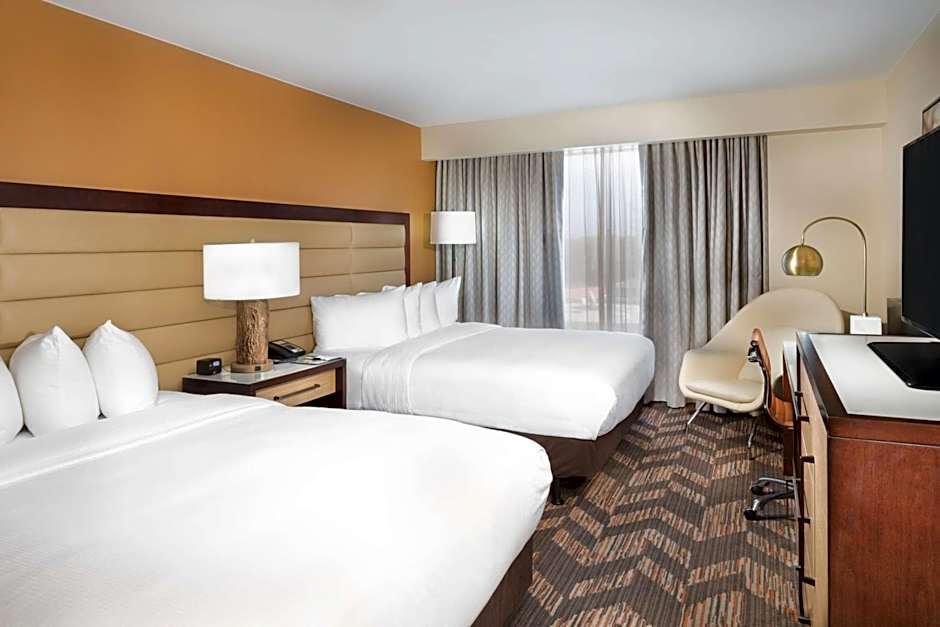 The DoubleTree by Hilton Lawrence offers a variety of room types including Queen Rooms, King Rooms, Deluxe King Rooms, Deluxe Queen Rooms, and Two-Room King Suites. The Queen Rooms and Deluxe Queen Rooms have two queen size beds and accommodate up to 4 adults and 3 children. The King Rooms, Deluxe King Rooms, and Two-Room King Suites have one king size bed and accommodate up to 4 adults and 3 children. All rooms are non-smoking.
