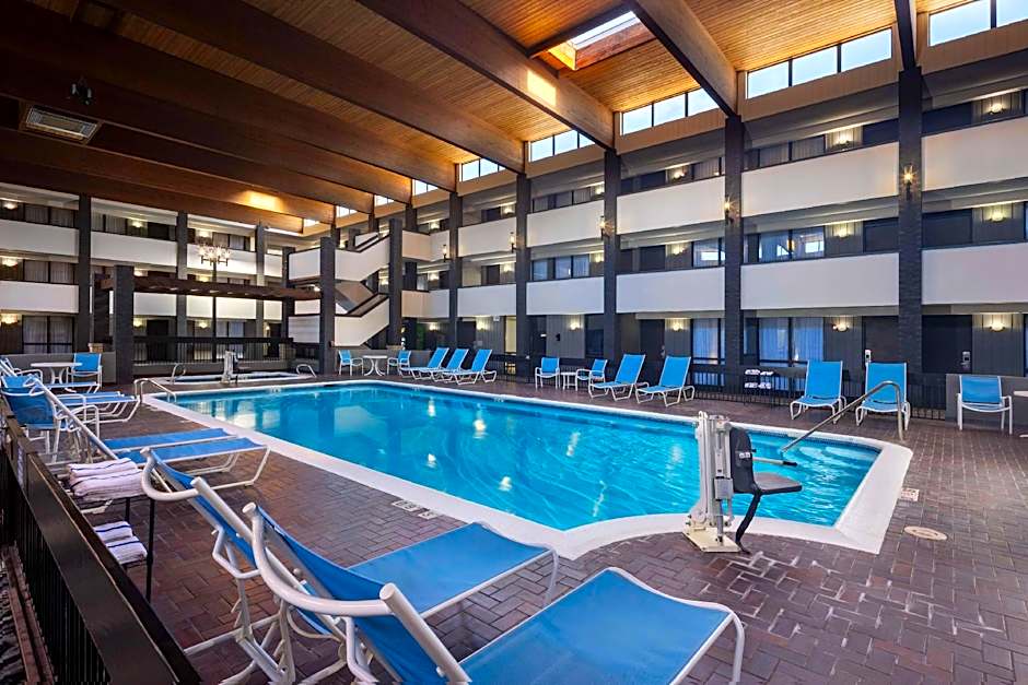 Featured amenities include free Wi-Fi, private on-site parking, and an indoor swimming pool. Free airport shuttle and free shuttle service help with travel plans, while a 24-hour front desk, air conditioning, a bar, and non-smoking rooms add everyday convenience. A pet-friendly policy carries extra charges, and meeting or banquet facilities are available for an additional fee.