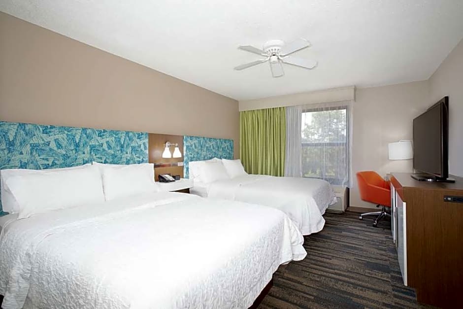 The Hampton Inn & Suites Kansas City-Merriam offers a range of room types including King Rooms, Double Rooms with Two Double Beds, and Deluxe Rooms. All rooms are non-smoking and have a room size of 248 sqft. The King Rooms accommodate 3 adults and 2 children with a King bed, while the Double Rooms accommodate 5 adults and 4 children with two Double beds. The Deluxe Rooms can accommodate either 5 adults and 4 children with a King bed and a Sofa Bed or 7 adults and 4 children with a Sofa Bed and two Queen beds.