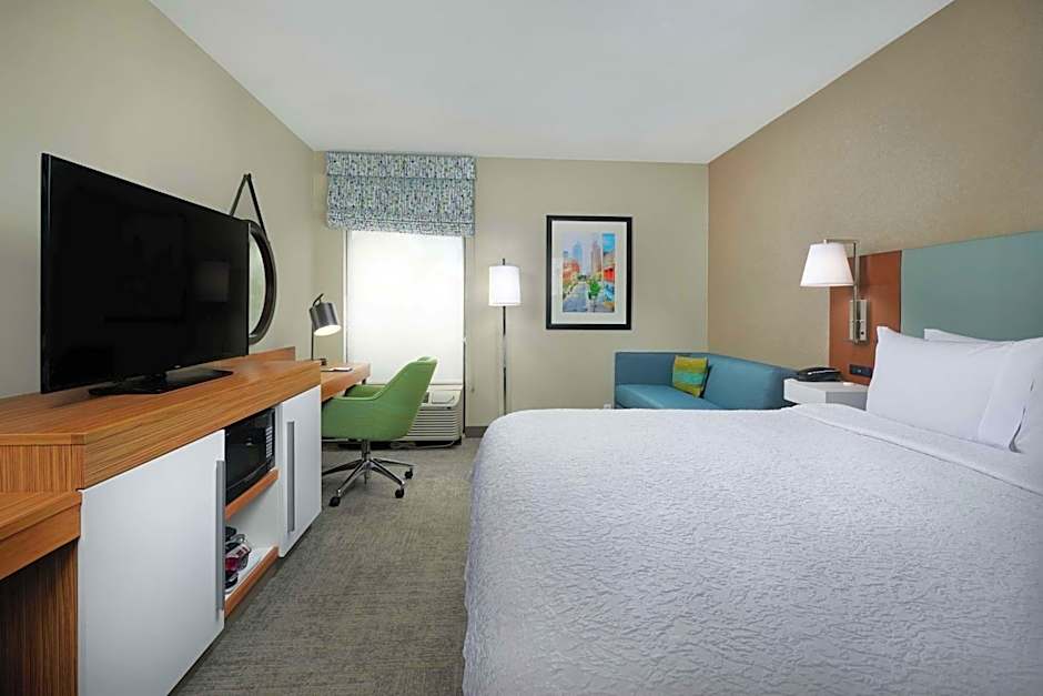 Sofa bed, 32-inch HD TV, work desk, coffeemaker, free WiFi access Enjoy a restful stay in this comfortable room with a clean and fresh Hampton bed®, a sofa bed and a 27-inch TV with HD channels. This room also features a large work desk, a mini-refrigerator and a coffeemaker. Free WiFi access will help you stay connected when on the road. The bathroom contains plush towels and a shower featuring a curved shower rod for added space and light.