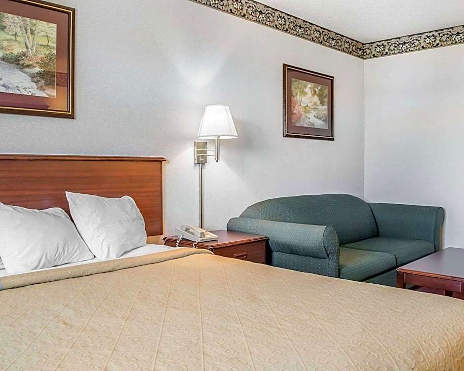 The Quality Inn & Suites Brooks Louisville South offers a variety of room types including suites and standard rooms. The rooms are non-smoking and come in different sizes, ranging from 183 sqft to 205 sqft. The accommodation options include King Suites with a sofa bed, King Rooms with a king size bed, accessible King Rooms, and Queen Rooms with two queen beds. The rooms can accommodate either 2 adults and 1 child or 4 adults and 3 children, depending on the room type.