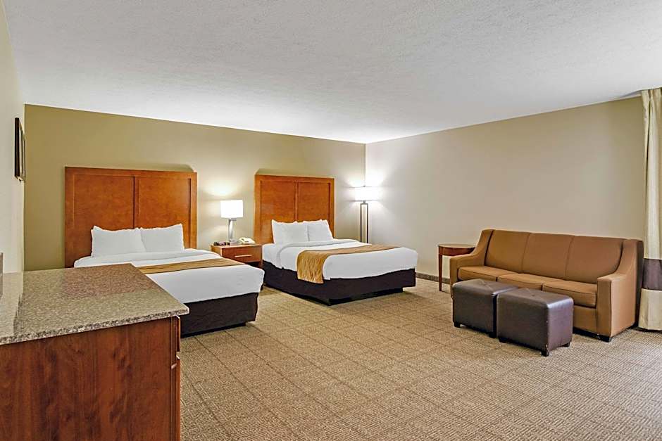The Comfort Inn Henderson offers a variety of room options including King Rooms, Queen Rooms with Two Queen Beds, and King Rooms with Whirlpool. All rooms are non-smoking and have a room size of 312 sqft or 323 sqft. The rooms can accommodate either 2 adults and 1 child or 4 adults and 3 children, depending on the type of room. The beds in the rooms range from 1 King size bed to 2 Queen size beds.