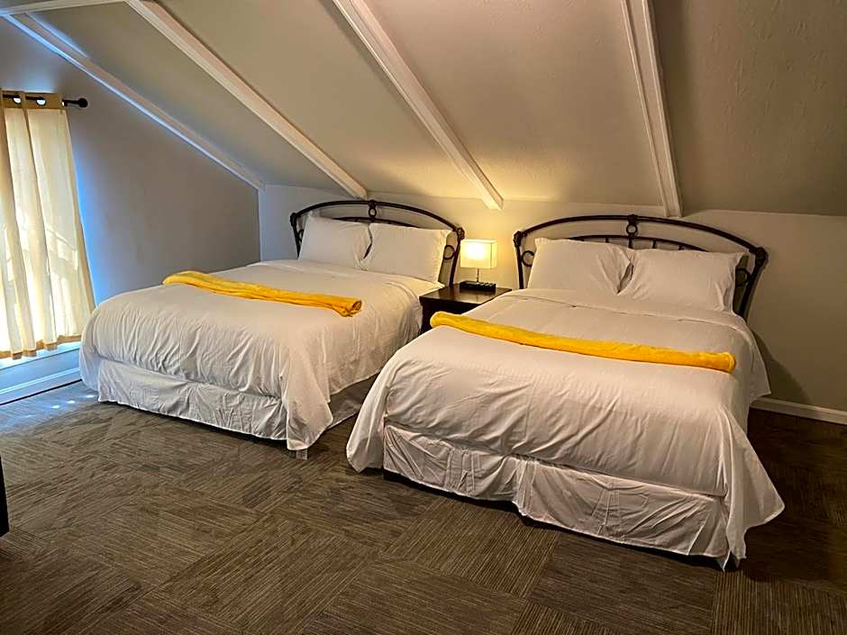 The Twin Lakes Creamery, Grill & Inn offers a variety of rooms including Small Double or Twin Rooms with a double bed, Deluxe Queen Rooms with Two Queen Beds that are pet-friendly, Queen Rooms with a queen-size bed, and Deluxe Queen Rooms with one queen-size bed. All rooms are non-smoking and can accommodate 2 adults and 1 child. The sizes of the rooms range from 172 sqft to 452 sqft.