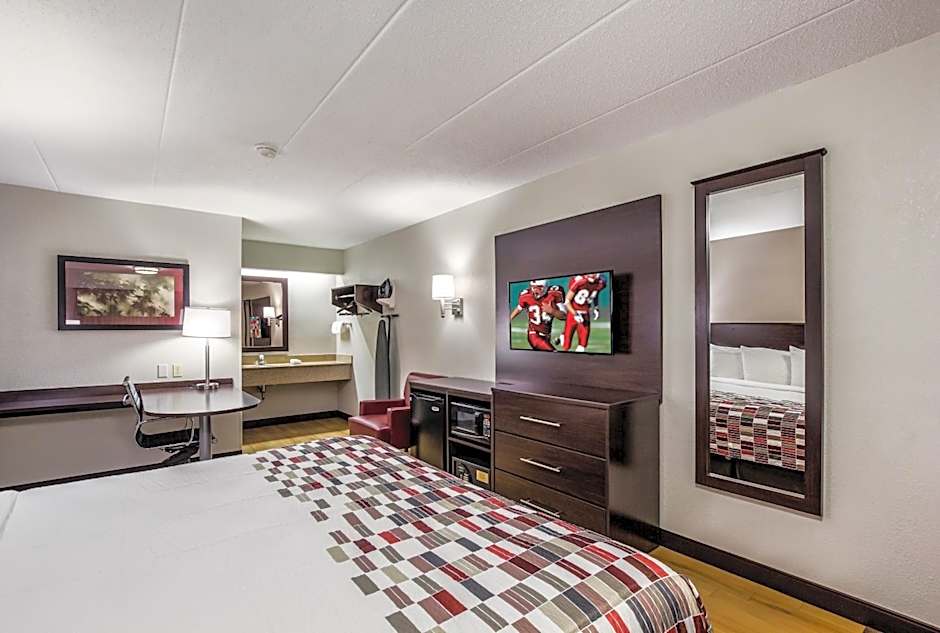 Red Roof Inn Lexington offers a selection of comfortable and spacious rooms to suit your needs. Whether you're traveling alone, with a partner, or with your family, there's a room for everyone. Choose from the Superior King Room Disability Access Roll-ln Shower Smoke Free, Deluxe Room with Two Double Beds Smoke Free, Standard King Room Smoke Free, or the Superior King Room Smoke Free. Each room is equipped for your convenience with amenities such as a private entrance, air conditioning, and a bathtub. Stay in style and comfort at Red Roof Inn Lexington.