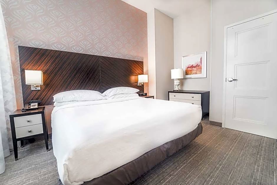 Refreshment center access, WiFi, Keurig coffee brewer are all included in our Premium Suites. Refreshment centers on these floors come stocked with non-alcoholic beverages and snacks. 630-690 square feet. Complimentary cooked-to-order full breakfast and Evening Reception featuring beer, wine, premium spirits and light snacks. WiFi available, microwave, refrigerator, HDTV, as well as hairdryer, iron, and coffeemaker.