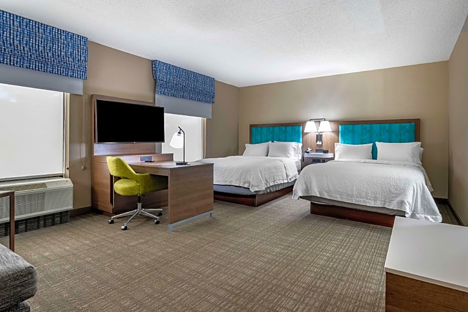 HD TV, work desk, easy chair & ottoman, coffeemaker, free WiFi access Enjoy a restful stay in this comfortable room with a clean and fresh Hampton bed®, an easy chair and ottoman and a 25-inch TV with HD channels. This room also features a large work desk, a coffeemaker and free WiFi access to help you to stay connected when on the road. The bathroom contains plush towels and a shower featuring a curved shower rod for added space and light.