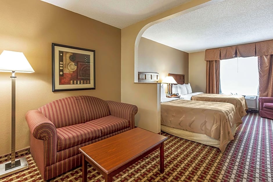 The Quality Suites Paducah offers King Suites with 1 King bed, accommodating 2 adults and 1 child, and Double Suites with either 1 Double bed or 2 Double beds, accommodating 4 adults and 4 children. All rooms have a room size of 398 sqft and do not allow smoking.