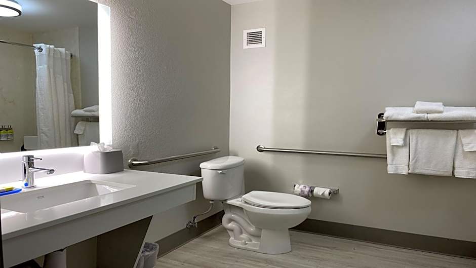 Single King Bed with Walk-in Shower (Wheelchair Accessible) has a satellite TV, microwave and air conditioning.