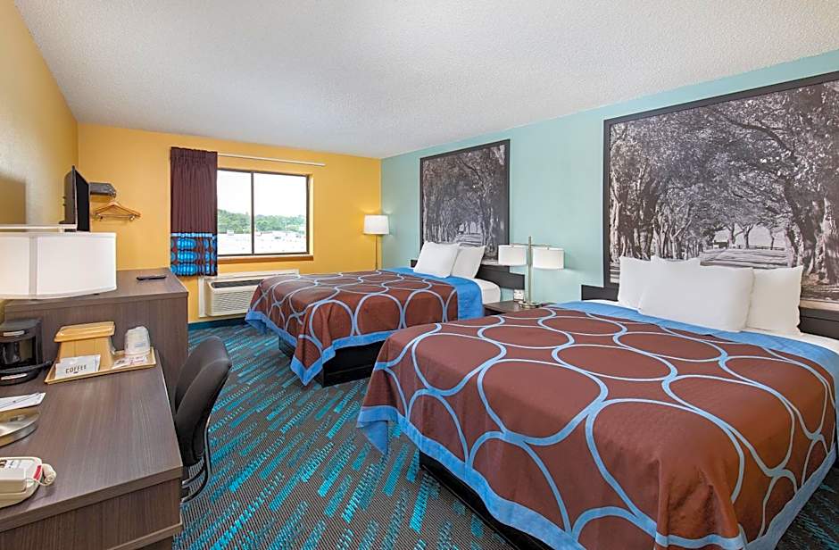 The Super 8 by Wyndham Somerset offers various room types, including Queen Rooms (both smoking and non-smoking), Queen Studio Suites with Two Queen Beds (smoking), and Queen Rooms with Two Queen Beds (smoking and non-smoking). All rooms are 301 sqft in size and accommodate either 2 adults and 1 child or 4 adults and 3 children. The bed sizes in all rooms are Queen.