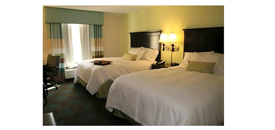 Sitting area, sofa bed, refrigerator, microwave, coffeemaker, free WiFi, 37-inch TV This spacious non-smoking studio suite features 2 of our queen-sized clean and fresh Hampton beds® and a separate sitting area with a sofa bed and a 37-inch HDTV. Make your own snacks using the wet bar complete with refrigerator and microwave. Catch up on work at the large work surface with mobile desk chair, and never miss an email with free WiFi access. Refresh in the bathroom which a Waterpik showerhead and curved shower rod that allows more light and space in the tub/shower.