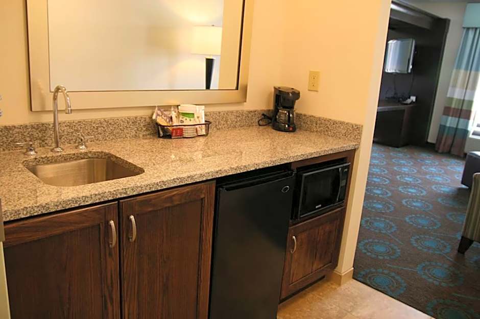 Sitting area, sofa bed, refrigerator, microwave, coffeemaker, free WiFi, 37-inch TV This spacious non-smoking studio suite features our king-sized clean and fresh Hampton bed® and a separate sitting area with a sofa bed and a 37-inch HDTV. Make your own snacks using the wet bar complete with refrigerator and microwave. Catch up on work at the large work surface with mobile desk chair, and never miss an email with free WiFi access. Refresh in the bathroom which a Waterpik showerhead and curved shower rod that allows more light and space in the tub/shower.
