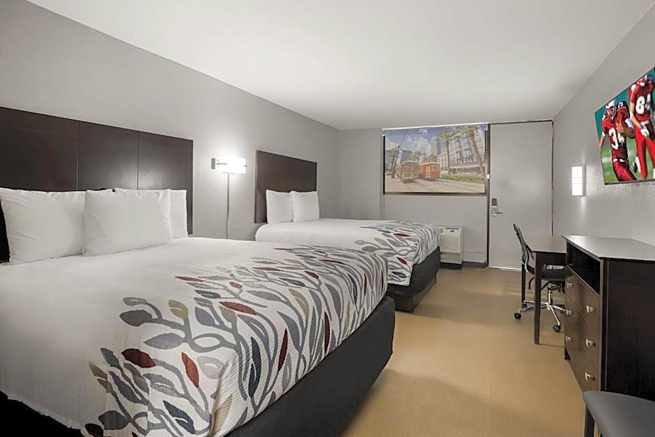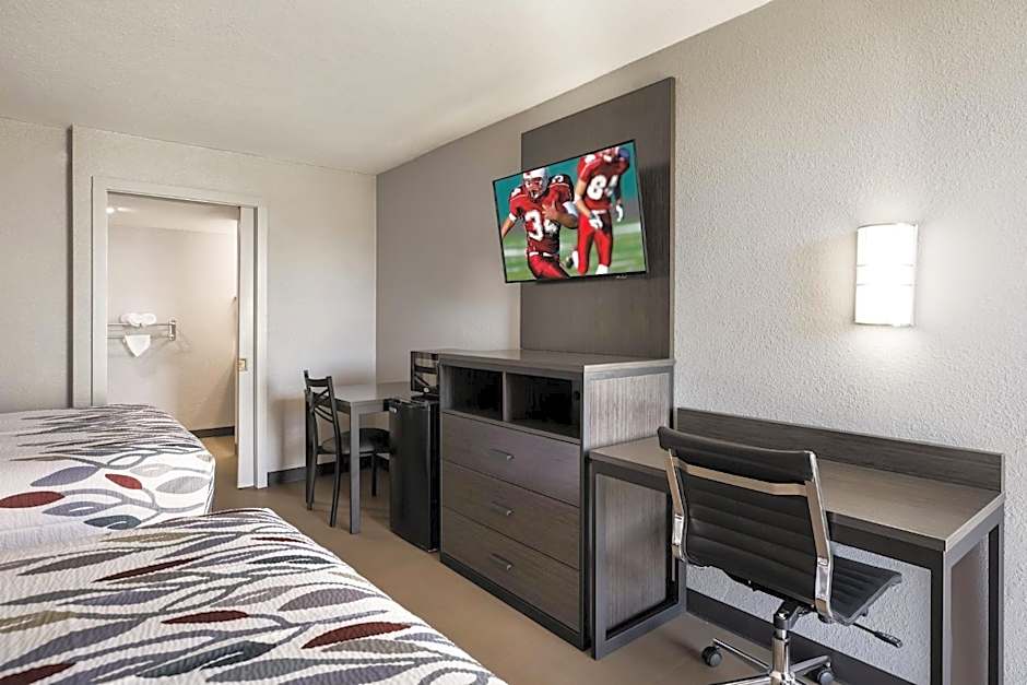 The Red Roof Inn Alexandria, LA offers a variety of room types. These include deluxe rooms with two queen beds that are smoking and disability accessible, superior rooms with two queen beds that are non-smoking, standard rooms with two queen beds that are non-smoking and disability accessible, deluxe king rooms with spa baths that are smoking, superior king rooms that are non-smoking, and standard king rooms that are non-smoking. The rooms accommodate either 2 adults or 4 adults and have either 1 king size bed or 2 queen size beds. Some rooms allow smoking while others do not.