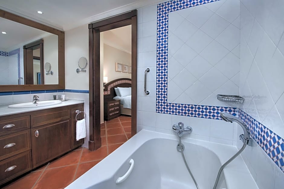 Amenities include free Wifi, private parking on site, an outdoor swimming pool, a business center, and a fitness center, plus a streaming service (like Netflix). The kitchenette features kitchenware and a private entrance, while non-smoking rooms with air conditioning are available. The building is wheelchair accessible with an elevator, and additional touches include beach chairs/loungers, a picnic area, and a bathtub. Pet Friendly (extra charges) and a golf course (extra charges) are also offered, along with a kid-friendly buffet.