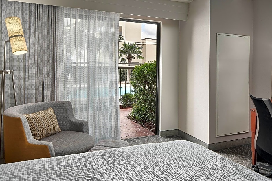 The Courtyard Shreveport-Bossier City/Louisiana Boardwalk hotel offers a variety of room options including Queen Rooms with Poolside View, Queen Rooms with Two Queen Beds, King Rooms with Sofa Bed, One-Bedroom King Suites, and King Rooms with Sofa Bed and Downtown/River View. All rooms are non-smoking and have a room size of either 323 sqft or 355 sqft. The rooms can accommodate up to 4 adults and 3 children, and feature either a King size bed or a Sofa Bed.