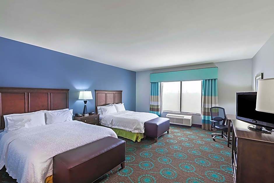 The Hampton Inn & Suites Shreveport/Bossier City at Airline Drive offers a variety of room options. These include King Studios with a sofa bed, King Rooms with disability access, Queen Rooms with two queen beds, and Queen Rooms with two queen beds and disability access. All rooms are non-smoking and can accommodate up to 5 adults and 4 children. Bed sizes range from king size beds to two queen size beds.