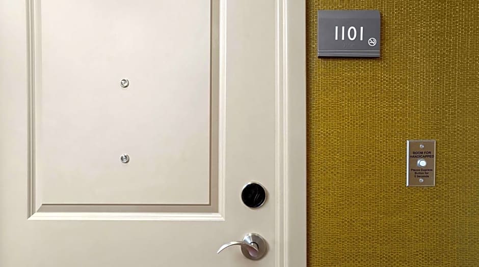 This mobility and hearing accessible standard room features one king-sized bed. Relax in a warm and welcoming accessible guest room with grab bar in tub with attached accessible seating, lowered vanity in bathroom, and lowered shelf in closet. The room also has a visual alarm, and notification devices for the doorbell or door knock and incoming telephone calls. The room offers the latest in technology and ergonomic comfort to our guests. The ergonomic chair is good for your back and better for work. Enjoy your favorite television show on our 42-inch HDTV. There's also a microwave, refrigerator and coffee/tea maker to help you feel at home. And for conducting business, our rooms ensure your productivity thanks to the spacious work desk, two telephones with dataport and voice mail and complimentary WiFi. Any corresponding photo may not reflect the specific accessible room type or room feature.
