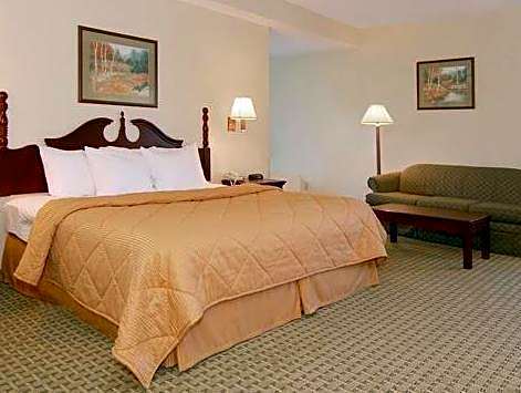 The Comfort Inn Hammond offers a variety of room types including King Rooms, Queen Rooms with Two Queen Beds, King Suites with Spa Bath, and Junior Suites. All rooms are non-smoking. The King Rooms and Queen Rooms with Two Queen Beds accommodate 2 adults and 1 child or 4 adults and 3 children respectively. The King Suites and Junior Suites accommodate 3 adults and 2 children with the addition of a sofa bed. The room sizes range from 312 sqft to 398 sqft.