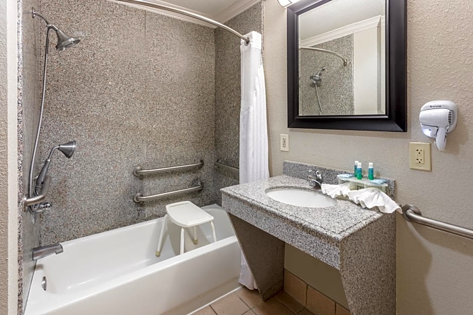 From free wireless internet access to accessible features with a roll in shower and closed caption TV this room makes all guests feel at home conveniences like a microwave and fridge provide a place to prepare and store snacks when it is time for business a work station keeps guests productive