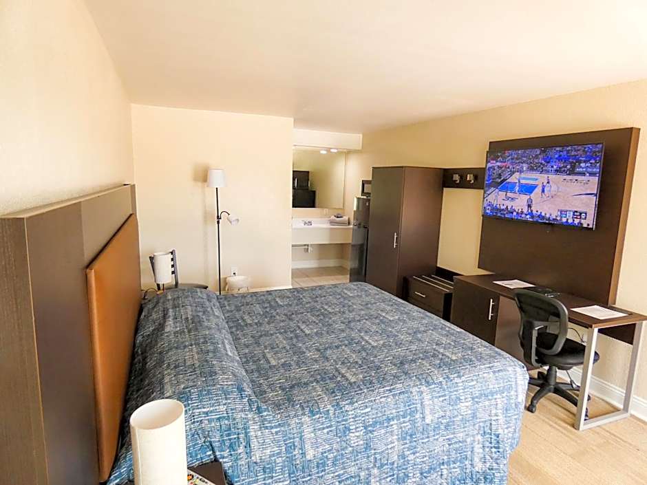 The hotel's on-site restaurant, Gators Sports Bar, offers a family-friendly ambiance and serves American cuisine, providing a convenient dining option for guests.