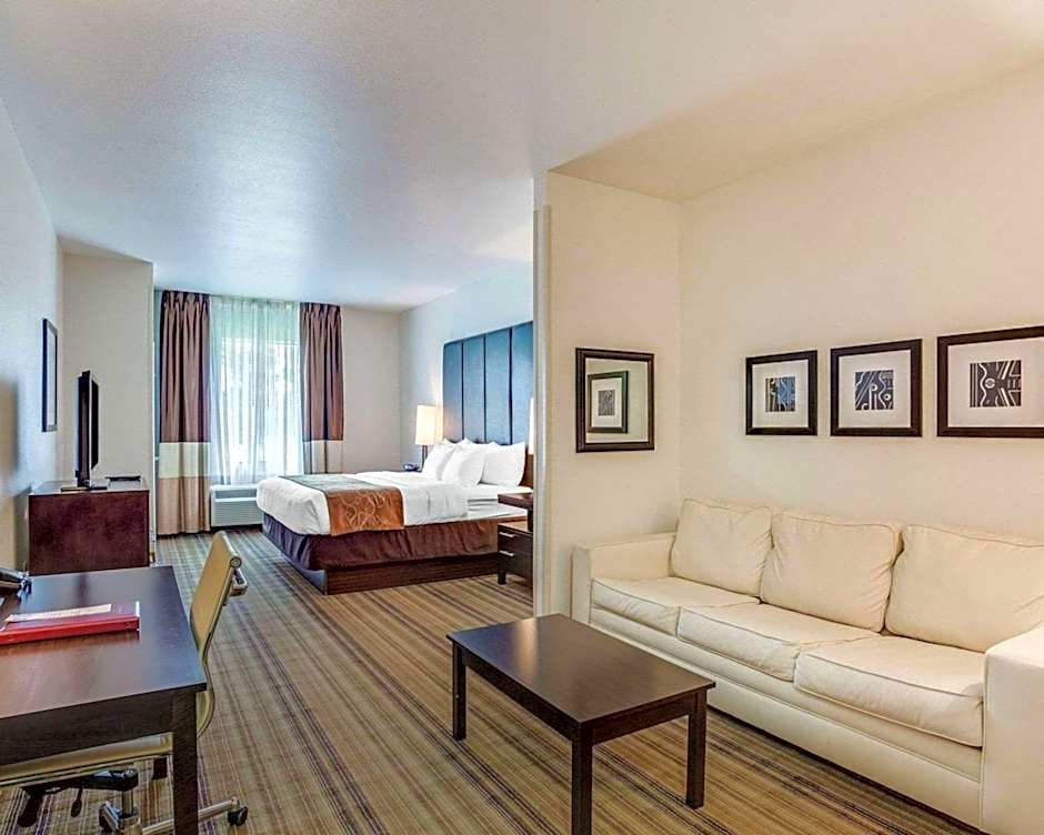 Located along Highway 59 in Mandeville, about 4,2mi from the city center, the two-star Comfort Suites Mandeville - Covington serves as a convenient base for those exploring the area. The property features free on-site parking, complimentary Wi-Fi, and both indoor and outdoor pools for a refreshing dip. A fitness center helps keep routines on track, while a 24-hour front desk and an elevator add easy convenience for travelers arriving at any hour.