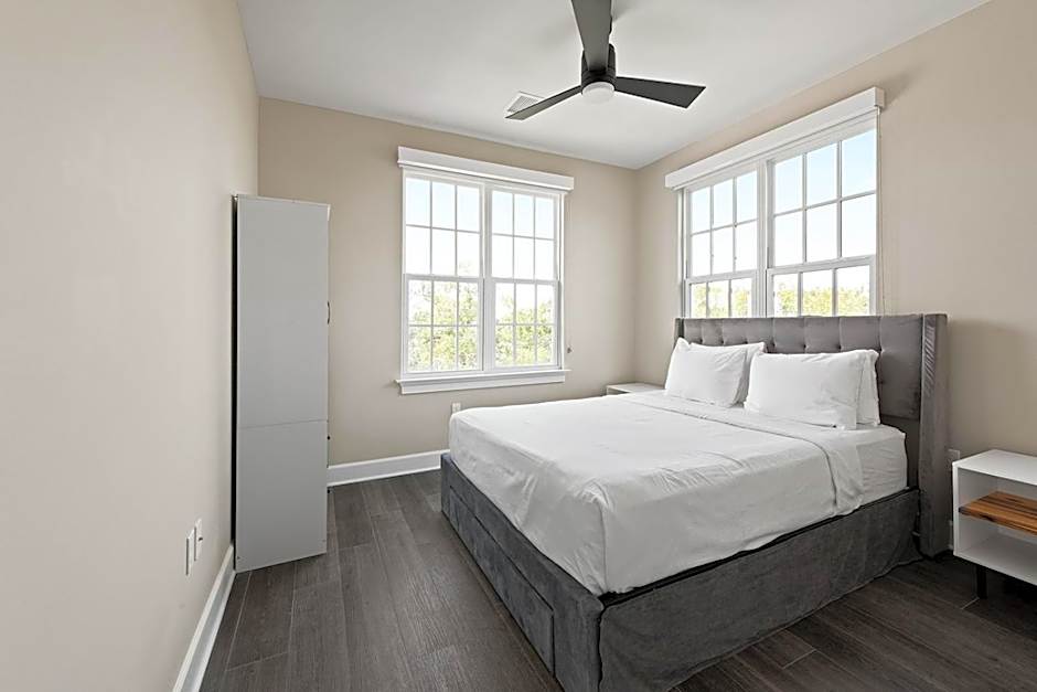 This spacious suite comes with 1 living room, 2 separate bedrooms and 2 bathrooms with a walk-in shower and free toiletries. Guests can make meals in the kitchen that features a stovetop, a refrigerator, a dishwasher and kitchenware. This air-conditioned suite consists of a dining area, a flat-screen TV with cable channels a washing machine and outdoor furniture. The unit has 3 beds.