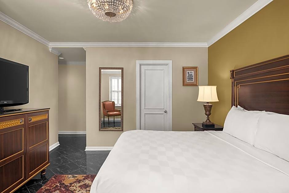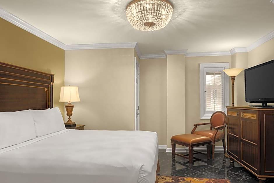 This spacious room with French Quarter or courtyard views features pillow-top mattresses and a private bathroom with walk-in shower. Complimentary WiFi, local calls and bottled water are included. Guests can also enjoy the in-room coffee machine and safety deposit box.