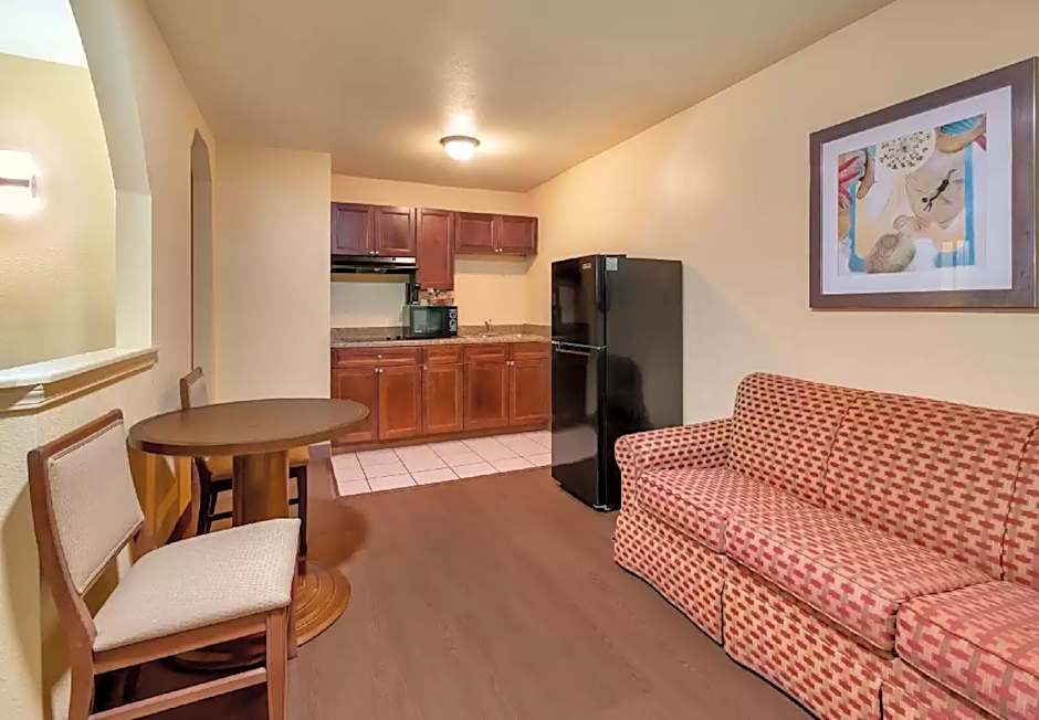 The suite's kitchenette, which has a refrigerator and a microwave, is available for cooking and storing food. This suite features air conditioning, a seating area and a TV.