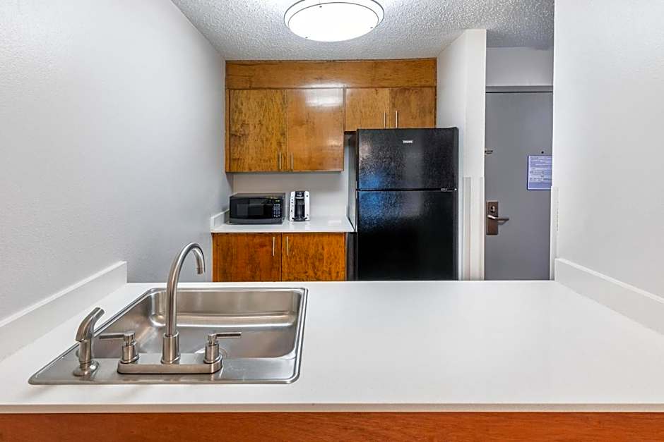 Featuring separate living and sleeping areas, this suite has a kitchen area with a sink, full refrigerator and microwave. A 42-inch flat-screen TV and free Wi-Fi are included. Contemporary decor is featured.