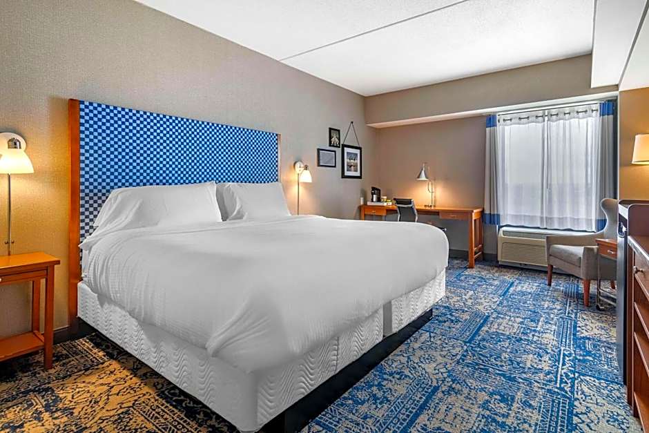The Bangor Aviator Hotel BW Premier Collection offers a variety of room types including King Rooms with Roll-In Showers, King Suites with Sofa Beds, Double Rooms with Two Double Beds, King Rooms, and King Rooms with Mobility Accessible Tubs. Smoking is not allowed in any of the rooms. The rooms range in size from 344 sqft to 700 sqft and can accommodate between 2 and 4 adults, with options for additional children. Bed sizes range from King size beds to Double beds.