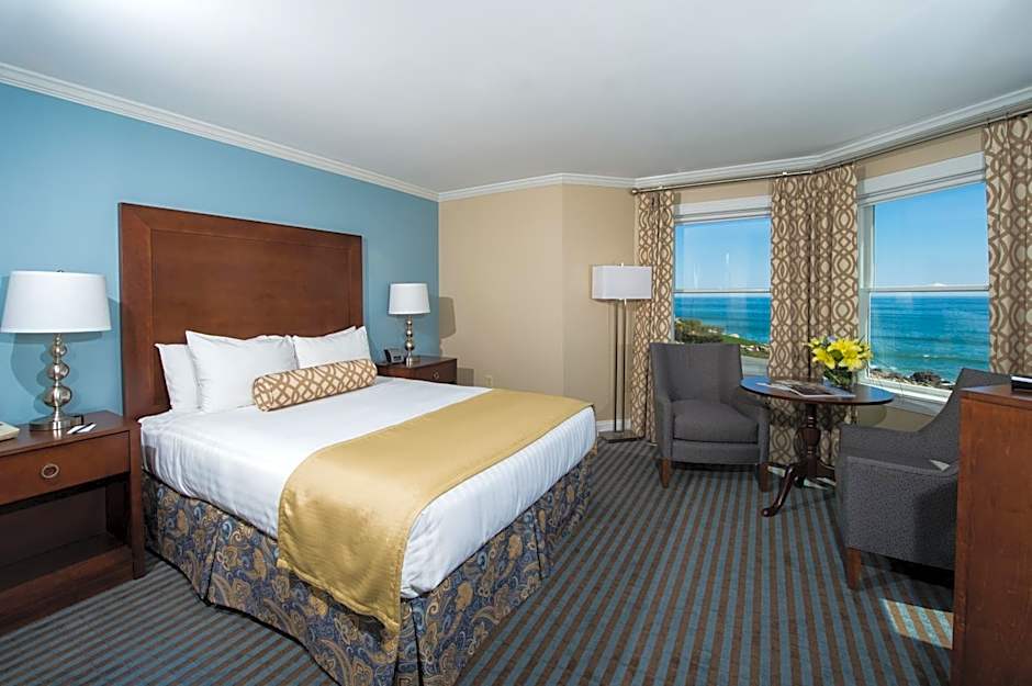This ocean front room is located in the Main hotel building on the east oceanside corner. It features one queen bed and a deck overlooking the Short Sands beach.