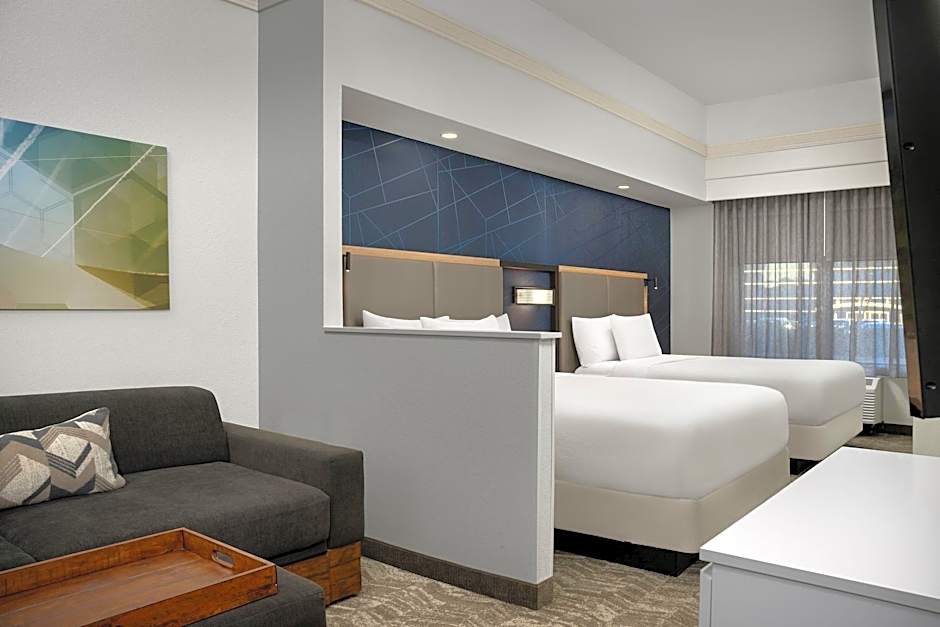 At the SpringHill Suites by Marriott Annapolis, guests can choose from Queen Studio rooms with two queen beds or King Studio Suites. These rooms have a size of 323 sqft and do not allow smoking. The Queen Studio can accommodate 6 adults and 5 children, with 1 King and 1 Sofa Bed, while the King Studio Suite can accommodate 4 adults and 3 children, with 1 King bed.