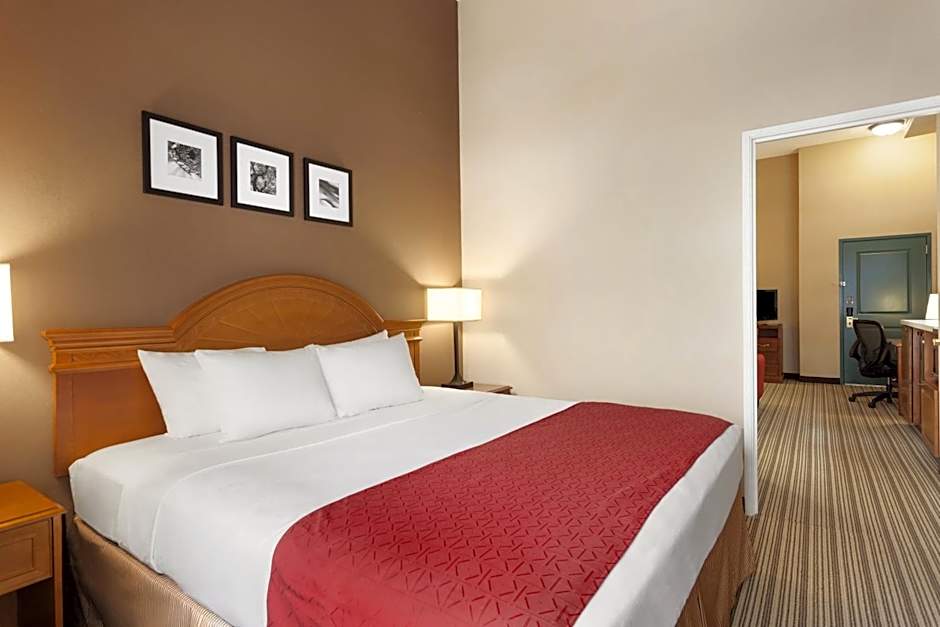 Room options span a range from standard rooms to king- and queen-bed configurations and larger suites. Some layouts stretch to about 495 square feet, including extended-stay options and one-bedroom suites, offering plenty of room to relax after a day on the road.