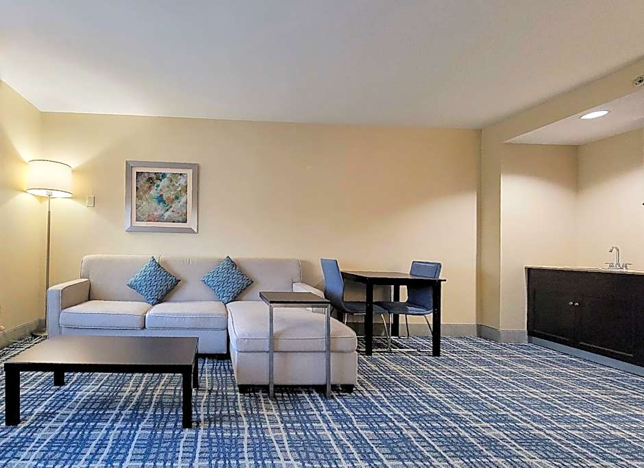 A seating area with a flat-screen TV, a desk and a private bathroom are featured in this suite. The unit offers 2 beds.