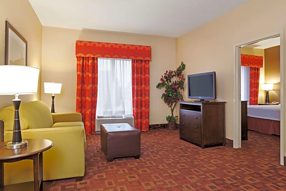 Any corresponding photo may not reflect the specific accessible room type or room feature. This mobility accessible, two-room, non-smoking suite features one king-sized bed, and an accessible roll-in shower. The room features include a whirlpool tub, microwave, refrigerator, wet bar, comfortable soft seating, a HDTV, and easy to operate alarm clock/radio. The free high-speed internet access will help you stay connected while on the road. If you prefer not to work at the desk, you can use the convenient lapdesk instead. You'll also enjoy the convenience of having a coffee maker with tea service and iron/ironing board in your room.