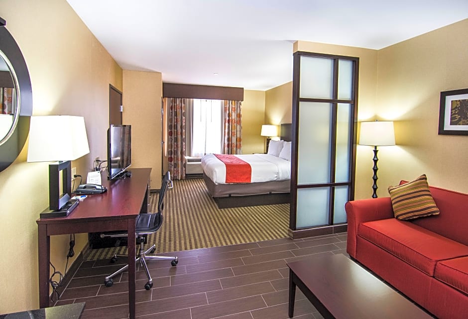 Convenient location to 95. Easy check in, plenty of carts to load luggage. Nice lobby makes a good 1st impression. Room was bigger than expected. Did not notice any issues with the appearance of the room. Felt clean. Beds were comfortable. Glad couch had a pull out bed. For the price, really can't beat it. Breakfast was solid. 24/7 coffee too. Kids loved the pool. Can't think of one negative thing.