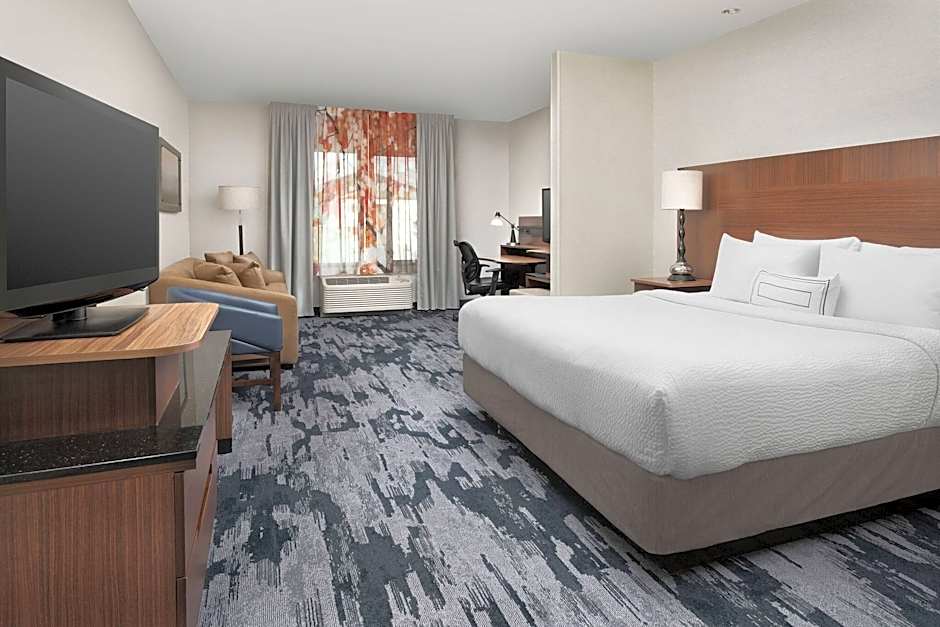 The Fairfield Inn & Suites Baltimore BWI Airport offers rooms with one king bed, rooms with two queen beds, and studio rooms with one king bed and a sofa bed. All rooms are non-smoking and have a size of 205 sqft. The rooms with one king bed accommodate 2 adults and 1 child, while the rooms with two queen beds and studio rooms accommodate 4 adults and 3 children. Additionally, there is a one-bedroom suite available with one king bed and a sofa bed.