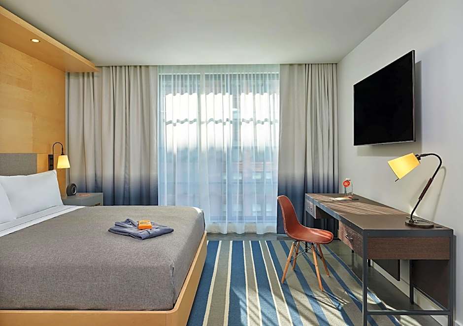 Love the clean interior beauty & young walking neighborhood of the canopy! I didn’t want to drive home, I preferred to drink & party, so before commiting to a fun night, I quickly booked a room for that night, after midnight & arrived close to 2am. As soon as I stepped on the Canopy/Hilton mat, I was greeted by staff who escorted me into the elevator up the front desk. Check in was pleasant & super efficient. Praying there was bottled water in the room (there wasn’t,) a great surprise was the immaculate filtered water station right by the elevator. The room was super comfortable with fantastic shower both hand held & large waterfall shower head! Btw sink/vanity was outside the bath toilet area facilitating getting ready. A noon checkout was extended an hour which I truly needed & appreciated!