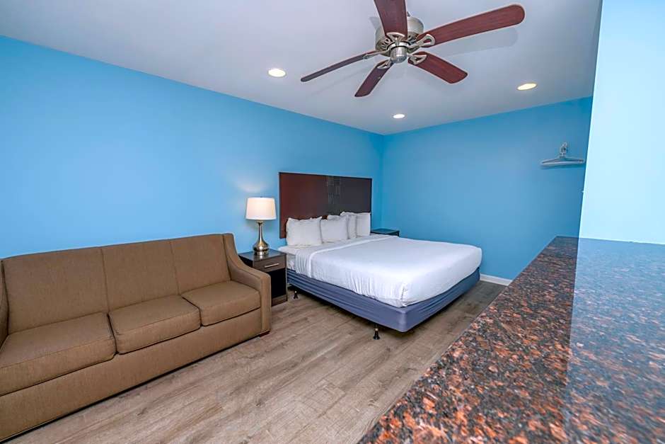 This room has a sofa, full kitchen, 32-inch flat-screen TV, and an private bathroom.