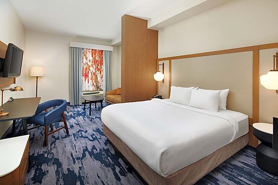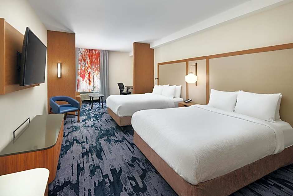 The Fairfield Inn & Suites Worcester Auburn offers a variety of room types including King Rooms, One-Bedroom King Suites, King Studios, and Queen Rooms with Two Queen Beds. All rooms have a room size of 301 sqft. Smoking is not allowed in any of the rooms. The King Room, One-Bedroom King Suite, and King Studio can accommodate 3 adults and 2 children, while the Queen Room with Two Queen Beds can accommodate 4 adults and 3 children. The King Room and King Studio have 1 King size bed, while the One-Bedroom King Suite and Queen Room with Two Queen Beds have 2 Queen size beds except for the King Studio, which also has a sofa bed.