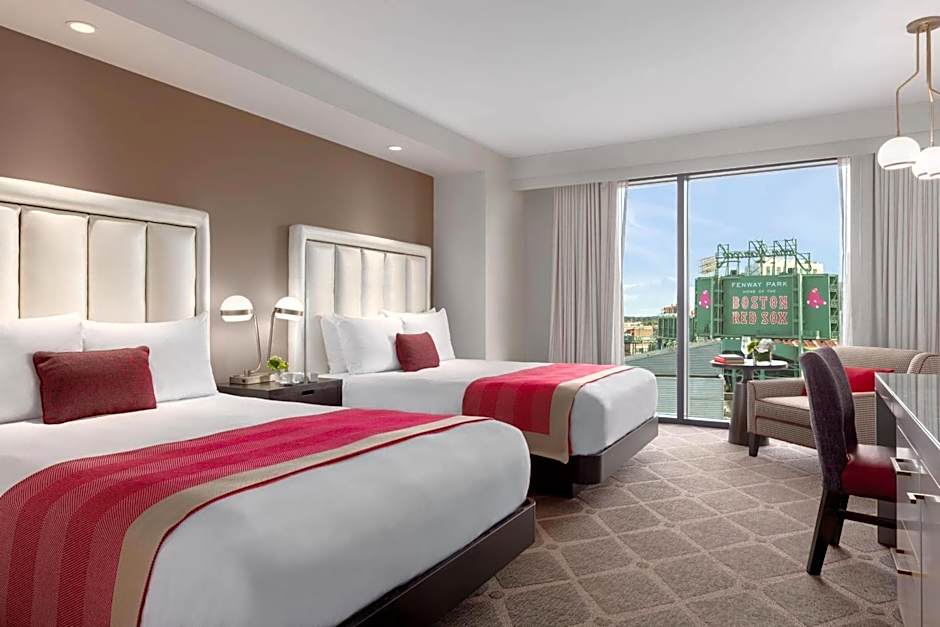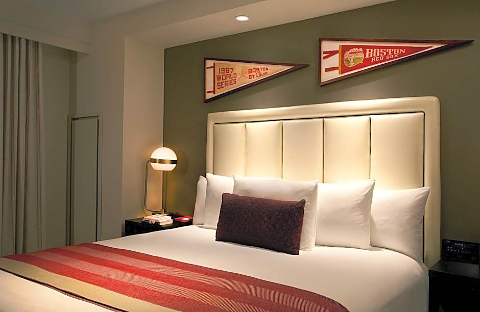 Coveted two room, top floor suite curated in partnership with the Boston Red Sox. Red Sox collectables include the #6 from the Green Monster scoreboard originally given to Johnny Pesky when he retired, a coffee table signed by numerous Red Sox legends, and much more. Direct view of Boston’s legendary Fenway Park. Large walk-out balcony with original Fenway Park seats. Private King bedroom with custom upholstered headboard, imported Italian linens, plush down comforters and luxurious pillows. Separate living room with floor to ceiling windows to soak in the city’s pulse. Fully equipped wet bar. Oversized marble bathroom with glass-enclosed walk-in dual shower, double vanity, and Malin + Goetz bath amenities. Luxury bathrobes Two 48in Flatpanel Smart TVs with Google Chromecast to stream from your favorite apps. Connecting room available.