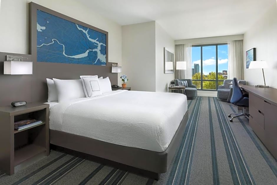 The Courtyard by Marriott Boston Cambridge offers various room types including King Rooms with City View, King Rooms, Deluxe King Guest Rooms, and King Rooms with River View. The rooms are all doubles with a size of 291 sqft and do not allow smoking. They can accommodate 2 adults and 1 child, and are equipped with either 1 King size bed or 1 King size bed and 1 Sofa bed.
