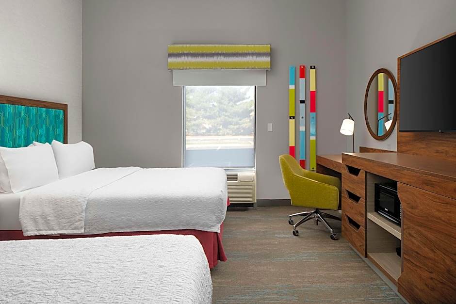 The Hampton Inn Chicopee - Springfield offers Queen Rooms with Two Queen Beds, accommodating 4 adults and 3 children. Smoking is not allowed in these rooms. These rooms come in both a disability access/non-smoking option and a non-smoking option. Additionally, the hotel has King Rooms with one King size bed, accommodating the same number of guests and also non-smoking.