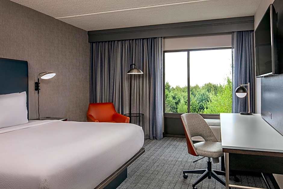 Great location. Friendly staff. Lobby, common areas and hallways were modern and clean. The room was very clean and comfortable. Pet-friendly. Nice restaurant in the hotel.